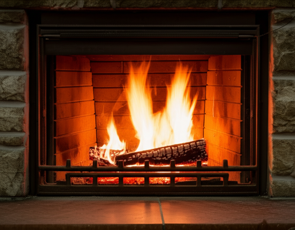 ormandaki kulübedeki şömine, in realistic style