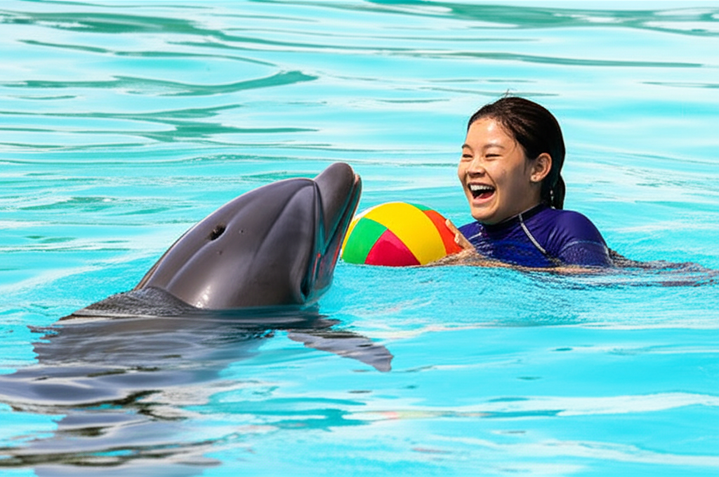 a dolphine playing with kid