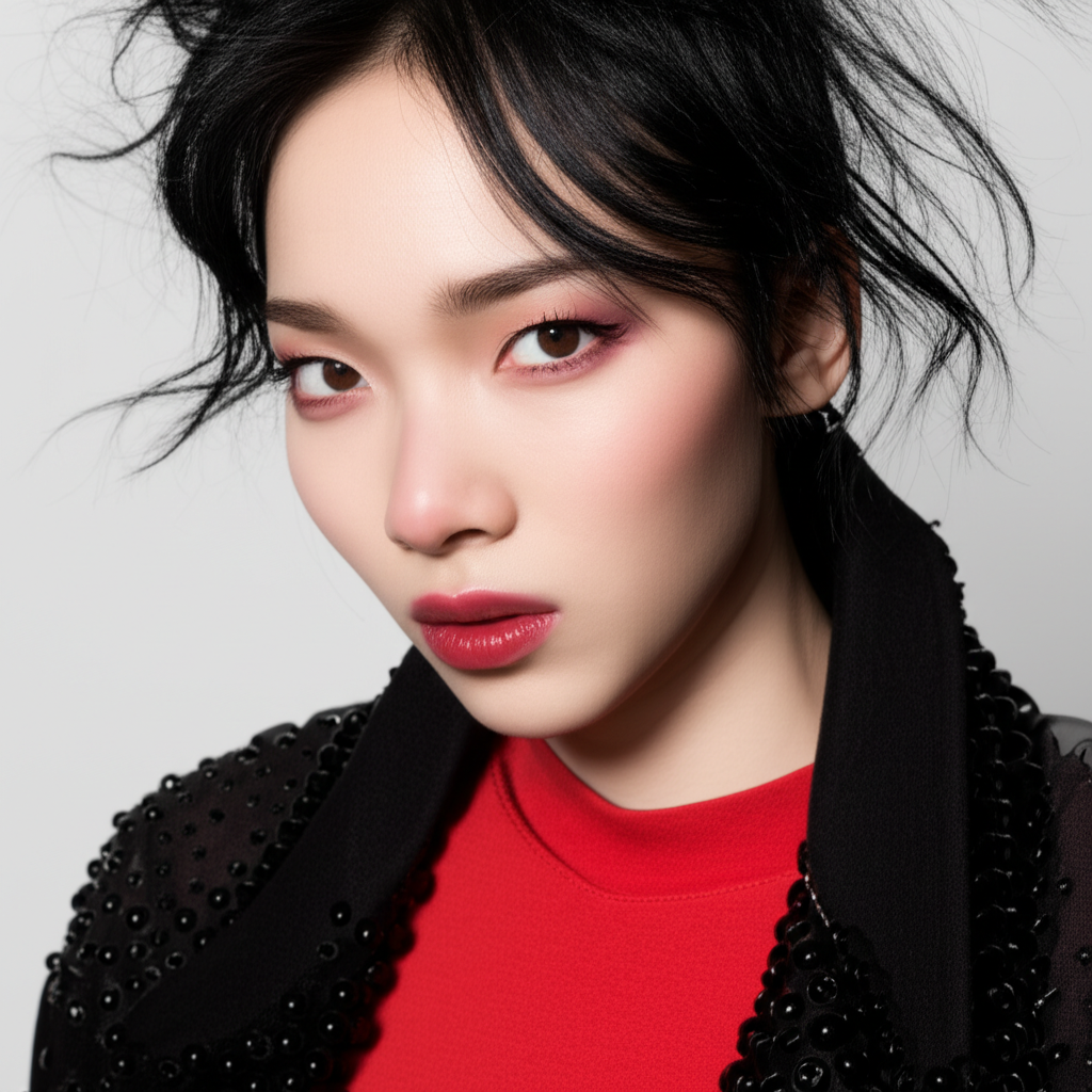 perfect headshot for a magzine, in realistic style, depicting fashion