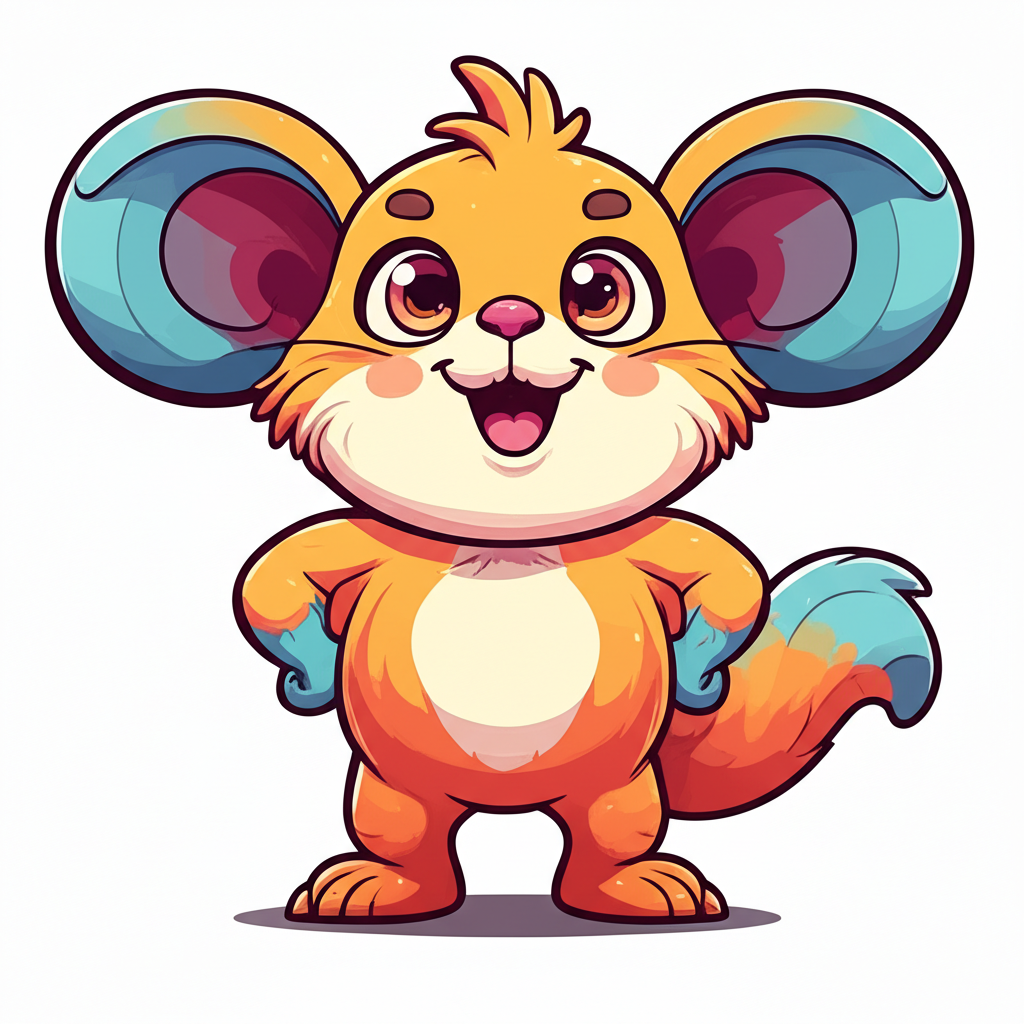 Friendly fantasy creature, small and cute, imaginative style, pastel and bright colors, cheerful expression, perfect for children aged 4–10, suitable for educational and entertainment channel mascot, flat cartoon style, high detail, transparent background” --Y>´suitable for global kids / Friendly anthropomorphic / Charming and cheerful / whimsical style KukiTV branding style , in fantasy style