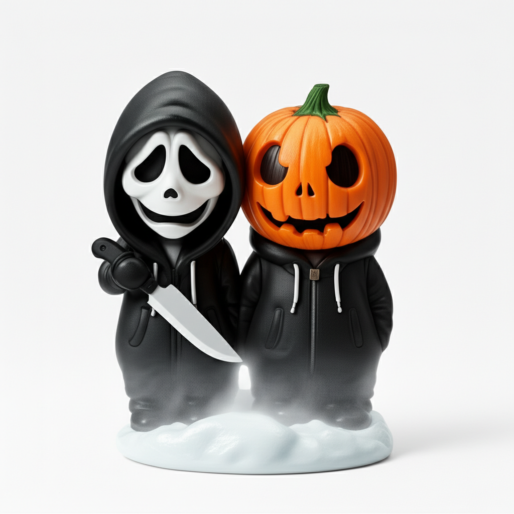 snow and noel theme on scream character and pumpkin scream character has a knife for hand